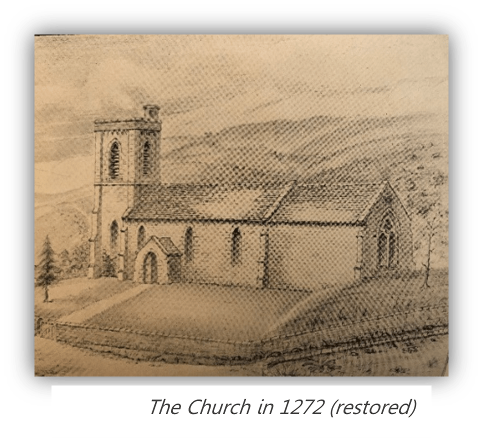 The Church dedicated to St Chad took 60 years to build, passing to his son in 1271, Robert de Stapleton. This Church stood for 600 years.