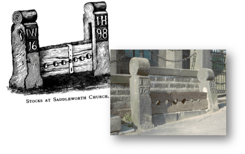 In 1698 the Stocks (separately listed grade 2), inscribed with the date, were set up in front of the old church, probably replacing an older set. Originally instituted by Edward 3rd in 1350 for the punishment of serious offences. Later, they were used for Sabbath breakers and drunkards. The timber foot restraints have been replaced and each post has a cylindrical-shaped head with concentric circles carved on the outer faces. A drawing shows them to be in good condition in 1891