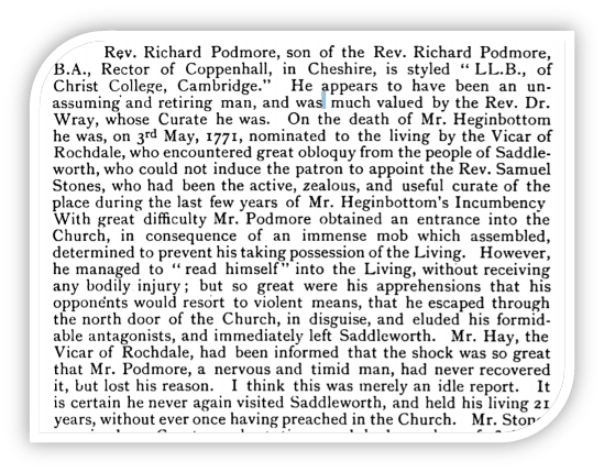 October 19, 2022June 8, 2023 Fiona The vanishing incumbent 1771 Mr Richard Podmore, the vanishing incumbent! Held his living for 21 years without ever once preaching in the Church. Share this: Click to share on X (Opens in new window) X Click to share on Facebook (Opens in new window) Facebook Like Loading... Related