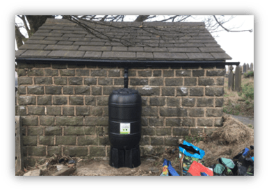 For the time being It has been decided that it is best to leave the entrance, ungated and without a door. The bath has been removed and replaced with donated guttering and water butt, having been installed. Making it more practical to use as a water source and better from an aesthetic appearance. The small compost mounds have been removed and replaced with larger bins nearby