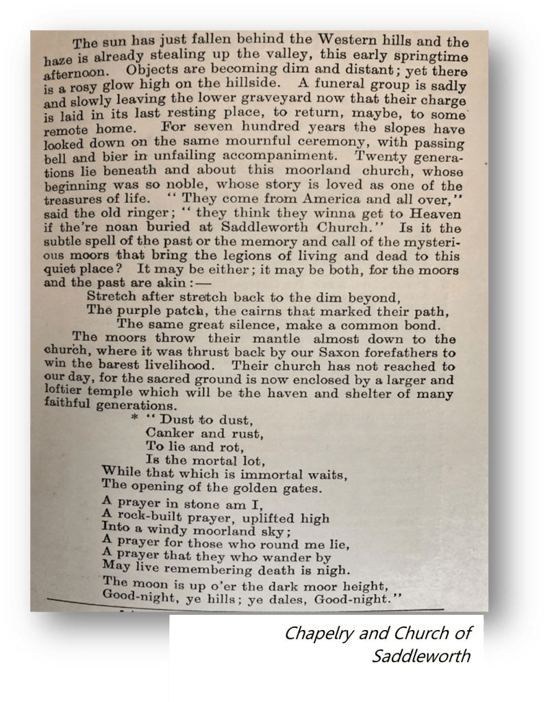 November 1, 2022June 8, 2023 Fiona A J Howcroft Vicars Warden Extract from A J Howcroft 1915 quoting some of Ammon Wrigley’s Saddleworth Church Poem Share this: Click to share on X (Opens in new window) X Click to share on Facebook (Opens in new window) Facebook Like Loading... Related