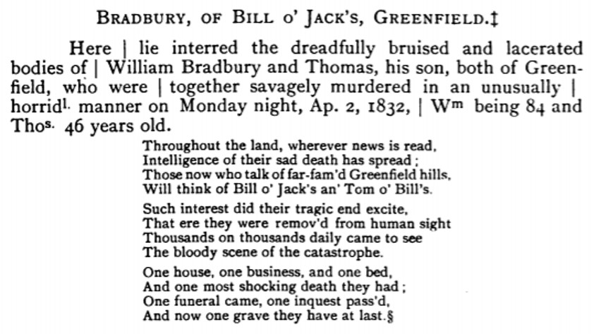 William Bradbury who died 2/04/1832 was murdered alongside his son Thomas Bradbury.