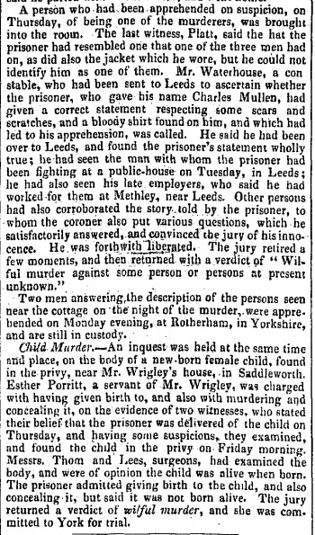 The murders received national attention – such as the article from Liverpool Mercury, 13th April 1832 issue 1093.