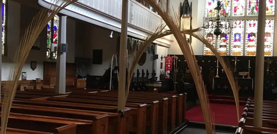 The flower Guild were most creative this week in placing palms around the church, in advance of Palm Sunday and Easter worship. As the heating is broken, visitors are being advised to wrap up warmly.
