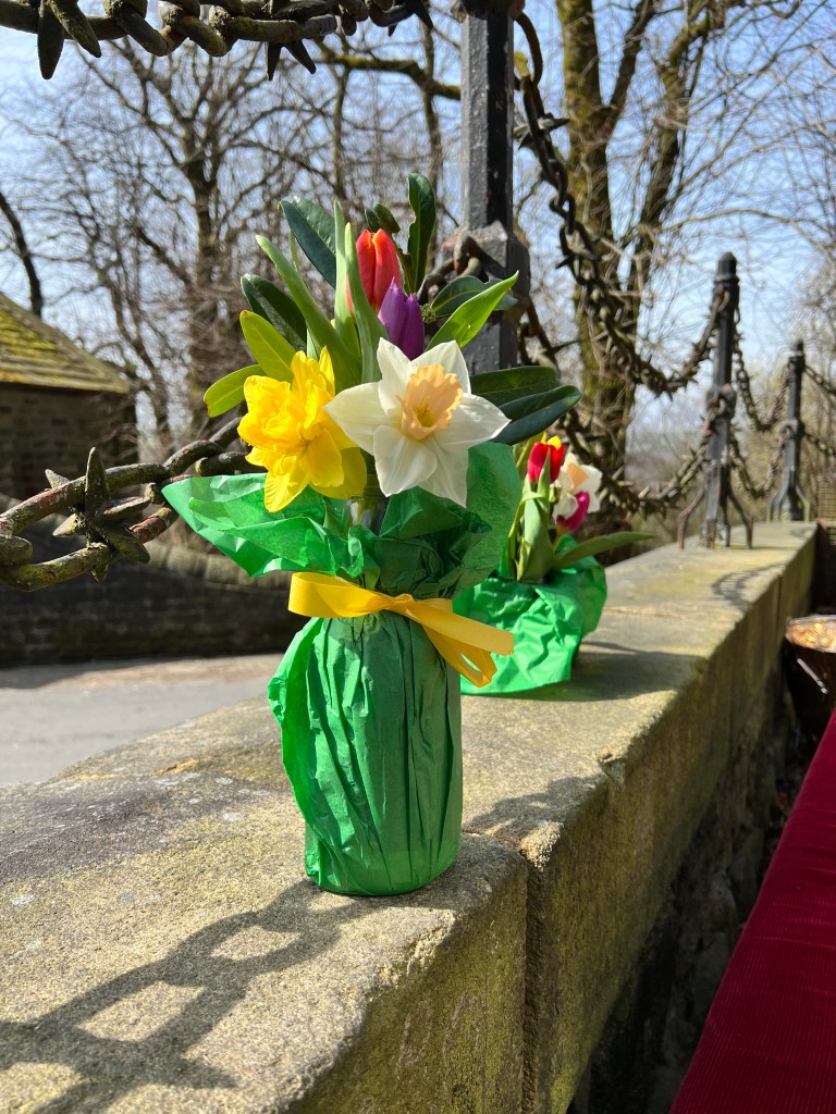 Paper flowers were added to a cross and an Easter Egg hunt inside church was enjoyed by families.