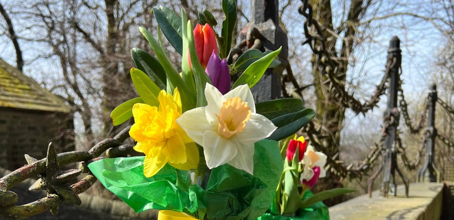 Paper flowers were added to a cross and an Easter Egg hunt inside church was enjoyed by families.