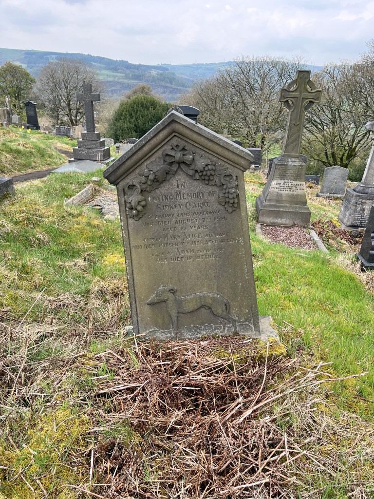 This unusual and ornate headstone depicts an image of a whippet ,which must have had some significance to Sidney.