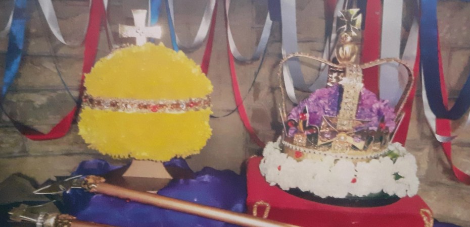 A photo from a past flower festival that happened more than a decade ago for a festival with the theme of composers. Designed by Jean Radcliffe, we think it represents Sir William Walton.