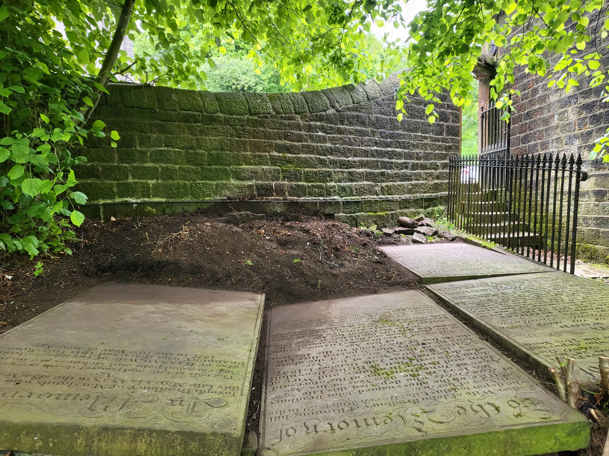 The lower yard is just below church and has for some time been neglected. Access is poor and many of the graves are obscured. Owing to the successes that have been achieved in the New Yard and the incredible improvements that have been made to improve access, we now begin on the Lower yard.