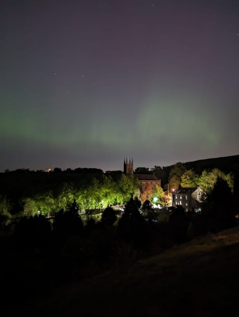 Our feature photograph was taken by Louise Whitehead from Diggle. Reminds me very much of one of the pictures on display at church on Bank Holiday Weekend, when artists exhibited for Saddleworth Art Trail, Angel on the Moor by Laura Skilbeck. The picture below was also a rare sight, and was captured by Jo Barton, this photograph was taken overlooking the church 17th May 2024.