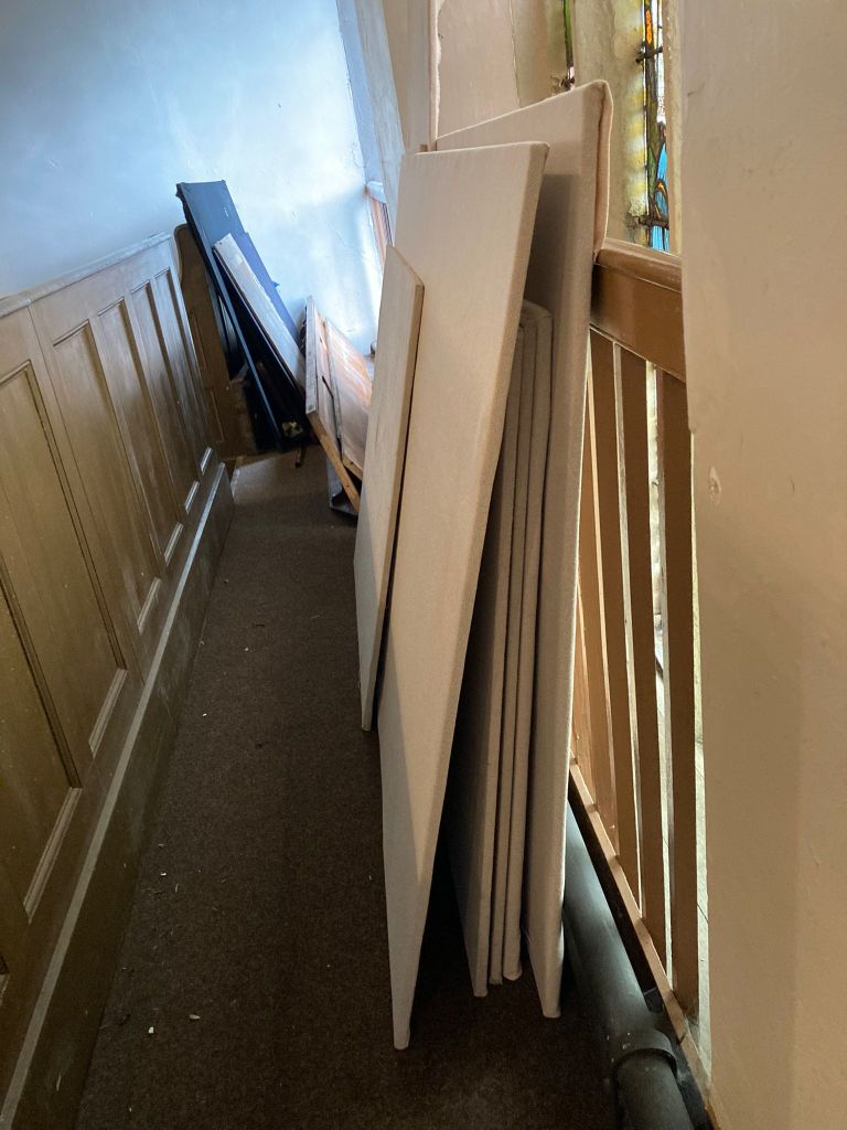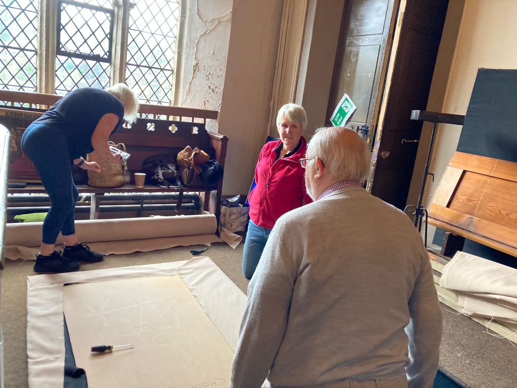 We often use boards, which are really heavy! these are rested ontop of our pews. Here are a few pictures of our ladies and gentleman, renewing the boards.