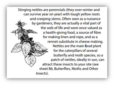 Acknowledging that it is ideal for nettles patches to be present, we should limit the spread through careful and strategic management. Therefore, we should cut before or during flowering then dig up with a fork and remove the rootstock as thoroughly as possible to prevent regrowth. Additionally, the rootstock can be exhausted by repeated hoeing and pulling out of roots, providing an effective method for ongoing maintenance. It’s important to note that nettle seed can lie dormant in the soil for up to 5 years, highlighting the long-term nature of its presence. As we aim to maintain a balanced ecosystem, our intention is not to eliminate nettles entirely, but rather to keep them contained close to the boundaries, away from areas of public footfall. This approach ensures that the nettles can continue to fulfill their ecological role while minimizing potential interference with human activity.