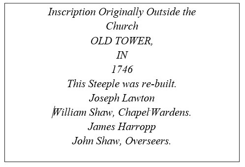 In 1781, the year of John Wesley’s visit to Saddleworth, a new peal of 6 bells were provided. These were cast by Thomas Rudhall of Gloucester and hung by Joseph Wrigley of Manchester. The new bells were inaugurated on 5th November, 1781.