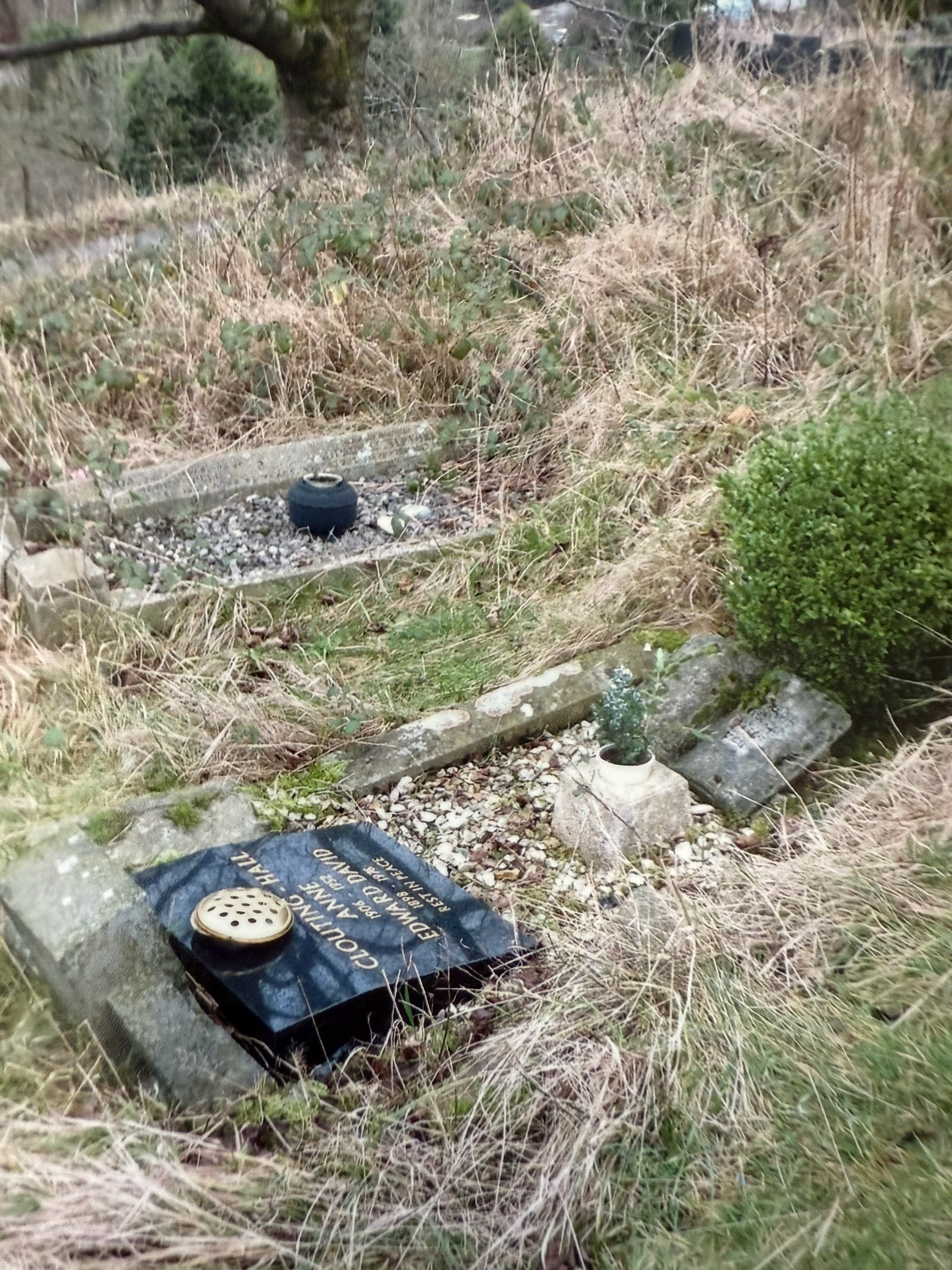 One of the images also depict the plot before subsidance repairs were carried out and a stonemason from Coventry also refurbished the memorial stonework making it much more stable and lasting.