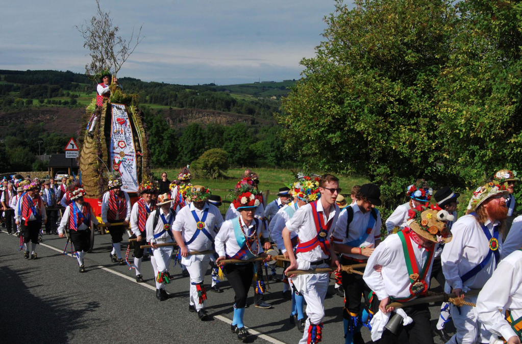 This has become a huge annual event on the Saddleworth Calendar, attracting thousands of visitors to the area and finishes with the hay cart being pulled up the very steep hill to the church.